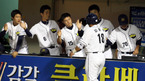 2006프로야구 4강 티켓에 결정적 영향을 미칠 두산 베어스와 KIA 타이거즈의 주말 3연전 첫 경기가 16일 잠실야구장에서 열렸다. 두산의 2회말 1사 2,3루 7번 임재철의 내야땅볼 때 3루주자 김동주가 선취 득점한 뒤 덕아웃에서 하이파이브 하고 있다./잠실-박영태 기자 ds3fan@osen.co.kr [Copyright ⓒ 한국 최고의 스포츠...