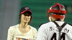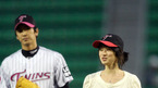 23일 잠실야구장에서 열린 2006 프로야구 LG 트윈스와 두산 베어스의 경기에 앞서 탤런트 최여진이 시구후 포수 조인성과 인사를 하고 있다./잠실=박영태 기자 ds3fan@osen.co.kr [Copyright ⓒ 한국 최고의 스포츠 엔터테인먼트 전문 미디어 OSEN(www.osen.co.kr) 무단전재 및 재배포 금지]