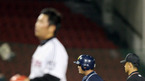 23일 잠실야구장에서 열린 2006 프로야구 LG 트윈스와 두산 베어스의 경기 1회초에만 13타자를 상대로 8연속 피안타와 더불어 10안타 9실점을 한 심수창이 1회 마지막 타자 김동주를 삼진으로 돌려세운후 쓸쓸히 마운드를 내려가고 있다./잠실=박영태 기자 ds3fan@osen.co.kr [Copyright ⓒ 한국 최고의 스포츠 엔터테인먼트 전문...