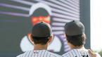 24일 잠실야구장에서 열린 2006 프로야구 LG 트윈스와 두산 베어스의 경기 5회가 끝나고 클리닝타임을 이용, 은퇴식을 가진 LG의 서용빈과 김정민이 전광판을 통해 방영되는 격려 메시지를 듣고 있다./잠실=박영태 기자 ds3fan@osen.co.kr [Copyright ⓒ 한국 최고의 스포츠 엔터테인먼트 전문 미디어...