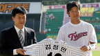 24일 잠실야구장에서 열린 2006 프로야구 LG 트윈스와 두산 베어스의 경기 5회가 끝나고 클리닝타임을 이용해 치러진 LG 서용빈 김정민의 은퇴식에서 서용빈이 그동안 정들었던 62번 배번의 유니폼을 김연중 단장에게 반납하고 있다./잠실=박영태 기자 ds3fan@osen.co.kr [Copyright ⓒ 한국 최고의 스포츠 엔터테인먼트 전문...
