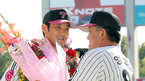 24일 잠실야구장에서 열린 2006 프로야구 LG 트윈스와 두산 베어스의 경기 5회가 끝나고 클리닝타임을 이용해 치러진 LG 서용빈 김정민의 은퇴식에서 서용빈이 양승호 감독대행으로부터 꽃다발을 받고 있다./잠실=박영태 기자 ds3fan@osen.co.kr [Copyright ⓒ 한국 최고의 스포츠 엔터테인먼트 전문 미디어...