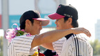 24일 잠실야구장에서 열린 2006 프로야구 LG 트윈스와 두산 베어스의 경기 5회가 끝나고 클리닝타임을 이용해 치러진 LG 서용빈 김정민의 은퇴식에서 서용빈이 안재욱의 축하 꽃다발을 받은 뒤 환하게 웃으며 포옹하고 있다./잠실=박영태 기자 ds3fan@osen.co.kr [Copyright ⓒ 한국 최고의 스포츠 엔터테인먼트 전문 미디어...