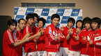 25일 서울 용산 e스포츠 상설경기장에서 벌어진 '스카이 프로리그 2006' 후기리그 4주차 마지막 경기에서 최연성(테란)이 이병민(테란)을 상대로 승리를 거둔 뒤 임요환, 주훈 감독으로부터 축하를 받고 있다. /용산=김영민 기자ajyoung@osen.co.kr [Copyright ⓒ 한국 최고의 스포츠 엔터테인먼트 전문 미디어...