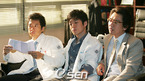 내년 초 개봉 예정인 미스터리 스릴러 영화 '천개의 혀' 제작사가 25일 오후 경기도 남양주 양수리 종합촬영소에서 촬영현장 공개행사를 가졌다. 외과의 김명민, 마취의 정유석, 정신과의 김태우가 나란히 앉아 진지한 표정으로 무언가를 상의하고 있다./주지영 기자 jj0jj0@osen.co.kr [Copyright ⓒ 한국 최고의 스포츠...