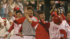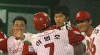 26일 대전 야구장에서 열린 한화 이글스와 SK 와이번스 경기 3-3 동점이던 8회초 1사 만루서 이범호가 결승 우월 만루홈런을 터뜨린 뒤 덕아웃의 동료들로부터 축하를 받고 있다./대전=김영민 기자ajyoung@osen.co.kr [Copyright ⓒ 한국 최고의 스포츠 엔터테인먼트 전문 미디어 OSEN(www.osen.co.kr) 무단전재 및...
