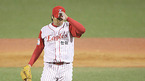 26일 대전 야구장에서 열린 한화 이글스와 SK 와이번스 경기 3회초 2사 1,2루서 한화 선발 류현진이 SK의 같은 인천 출신 동기생 이재원을 삼진으로 잡아내며 신인으로 사상 최초이자 최연소 한 시즌 200탈삼진 기록을 달성한 뒤 모자를 매만지고 있다./대전=김영민 기자ajyoung@osen.co.kr [Copyright ⓒ 한국 최고의 스포츠...