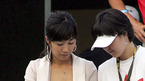 27일 서울 올림픽공원 테니스코트에서 벌어진 한솔코리아오픈 본선 1회전 마르티나 힝기스(스위스)와 캐롤라인 보즈니아키의 경기서 힝기스가 2-0으로 가볍게 승리했다. 가수 윤종신와 교제 중인 전 테니스 스타 전미라(왼쪽)가 힝기스의 경기를 관전하던 중 동석한 사람에게 반지를 보여주고 있다./올림픽공원=손용호 기자spjj@osen.co.kr...