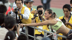 2006 대구국제육상대회가 옐레나 이신바예바, 류시앙 등 세계기록 보유자가 참가한 가운데 28일 대구월드컵경기장에서 벌어졌다. 여자 장대높이뛰기서 자신의 기록을 내지는 못했지만 1위를 차지한 이신바예바가 팬들에게 기념품을 주고 있다./대구=손용호 기자spjj@osen.co.kr [Copyright ⓒ 한국 최고의 스포츠 엔터테인먼트 전문 미디어...