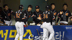 28일 잠실야구장에서 열린 2006 프로야구 두산 베어스와 롯데 자이언츠의 경기 1회초 1사 1,2루서 이대호의 2타점 적시타 때 홈인한 손인호와 황성용이 덕아웃의 동료들과 하이파이브 하고 있다./잠실=박영태 기자 ds3fan@osen.co.kr [Copyright ⓒ 한국 최고의 스포츠 엔터테인먼트 전문 미디어 OSEN(www.osen.co.kr)...