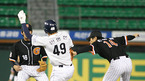29일 잠실 야구장에서 열린 두산 베어스와 롯데 자이언츠 경기 8회말 1사 후 김동주 우월 역전 솔로 홈런을 날리고 홈인, 나주환으로부터 축하를 받고 있다./잠실=김영민 기자ajyoung@osen.co.kr [Copyright ⓒ 한국 최고의 스포츠 엔터테인먼트 전문 미디어 OSEN(www.osen.co.kr) 무단전재 및 재배포 금지]