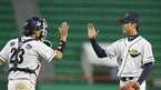 29일 잠실 야구장에서 열린 두산 베어스와 롯데 자이언츠 경기 두산 마무리 정재훈이 2-1 상황에서 세이브를 올린 뒤 용덕한 포수와 하이파이브를 하고 있다./잠실=김영민 기자ajyoung@osen.co.kr [Copyright ⓒ 한국 최고의 스포츠 엔터테인먼트 전문 미디어 OSEN(www.osen.co.kr) 무단전재 및 재배포 금지]