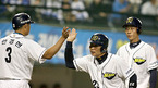 30일 잠실 야구장에서 열린 두산 베어스와 삼성 라이온즈 경기 2-4로 뒤지던 두산의 7회말 1사 만루서 강동우의 싹쓸이 우중간 3루타 때 용덕한(가운데) 고영민이 득점을 올리며 5-4로 역전하고 있다./잠실=김영민 기자ajyoung@osen.co.kr [Copyright ⓒ 한국 최고의 스포츠 엔터테인먼트 전문 미디어...