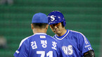 30일 잠실 야구장에서 열린 두산 베어스와 삼성 라이온즈의 경기 1회초 1사 2,3루서 심정수가 중전 1타점 적시타를 날린 뒤 김평호 1루코치의 축하를 받고 있다./잠실=김영민 기자ajyoung@osen.co.kr [Copyright ⓒ 한국 최고의 스포츠 엔터테인먼트 전문 미디어 OSEN(www.osen.co.kr) 무단전재 및 재배포 금지]