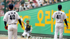 1일 잠실 야구장에서 열린 2006 프로야구 두산 베어스와 SK 와이번스의 경기 SK의 8회초 공격 때 두산의 불펜에서 두 명의 정재훈이 몸을 풀고 있다./잠실=박영태 기자 ds3fan@osen.co.kr [Copyright ⓒ 한국 최고의 스포츠 엔터테인먼트 전문 미디어 OSEN(www.osen.co.kr) 무단전재 및 재배포 금지]