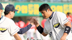 1일 잠실 야구장에서 열린 2006 프로야구 두산 베어스와 SK 와이번스의 경기서 2-0으로 이긴 두산의 김경문 감독이 쐐기 솔로홈런을 날린 최준석과 하이파이브 하고 있다./잠실=박영태 기자 ds3fan@osen.co.kr [Copyright ⓒ 한국 최고의 스포츠 엔터테인먼트 전문 미디어 OSEN(www.osen.co.kr) 무단전재 및 재배포...