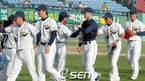 1일 잠실 야구장에서 열린 2006 프로야구 두산 베어스와 SK 와이번스의 경기에서 2-0으로 승리한 두산의 김경문 감독이 선발투수 랜들을 비롯한 선수들과 하이파이브 하고 있다./잠실=박영태 기자 ds3fan@osen.co.kr [Copyright ⓒ 한국 최고의 스포츠 엔터테인먼트 전문 미디어 OSEN(www.osen.co.kr) 무단전재 및...