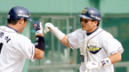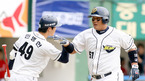 1일 잠실 야구장에서 열린 2006 프로야구 두산 베어스와 SK 와이번스의 경기 두산의 4회말 2사 후 5번 최준석이 중월 홈런을 날린 후 대기 타석의 민병헌과 하이파이브 하고 있다./잠실=박영태 기자 ds3fan@osen.co.kr [Copyright ⓒ 한국 최고의 스포츠 엔터테인먼트 전문 미디어 OSEN(www.osen.co.kr) 무단전재 및...