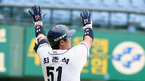 1일 잠실 야구장에서 열린 2006 프로야구 두산 베어스와 SK 와이번스의 경기 SK의 6회초 공격에서 두산 선발투수 랜들이 1사 2루에서 두 타자를 범타 처리한 후 포수 용덕한을 향해 엄지를 치켜세우고 있다./잠실=박영태 기자 ds3fan@osen.co.kr [Copyright ⓒ 한국 최고의 스포츠 엔터테인먼트 전문 미디어...
