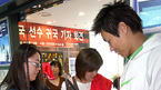 2006 월드컵 출전을 포기하고 지난 4월 12일 독일 프랑크푸르트로 출국, 오른 무릎 전방 십자인대 수술을 받고 재활을 거친 이동국이 1일 오후 인천공항을 통해 귀국했다. 기자회견장에서 한 여성 팬이 바지에 이동국의 사인을 받고 있다./인천공항=손용호 기자spjj@osen.co.kr [Copyright ⓒ 한국 최고의 스포츠 엔터테인먼트 전문...