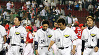 2일 현대 유니콘스의 마지막 홈 경기인 수원 야구장에서 열린 2006 프로야구 현대 유니콘스와 삼성 라이온즈의 경기가 끝난뒤 현대 유니콘스 선수들이 팬들을 향해 인사 하고 있다./수원=주지영 기자 jj0jj0@osen.co.kr [Copyright ⓒ 한국 최고의 스포츠 엔터테인먼트 전문 미디어 OSEN(www.osen.co.kr) 무단전재 및...