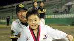 2일 현대 유니콘스의 마지막 홈 경기인 수원 야구장에서 열린 2006 프로야구 현대 유니콘스와 삼성 라이온즈의 경기를 마친뒤 정민태가 색색의 가발을 쓴 어린이 팬과 다정하게 사진을 찍고 있다./수원=주지영 기자 jj0jj0@osen.co.kr [Copyright ⓒ 한국 최고의 스포츠 엔터테인먼트 전문 미디어 OSEN(www.osen.co.kr)...