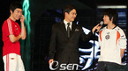 '인텔 코어2 듀오 탑재 매직스테이션 제1회 슈퍼파이트(이하 슈퍼파이트)'가 3일 오후 5시 서울 삼성동 코엑스 대서양홀에서 지상 최대의 규모로 펼쳐 졌다. 2경기 우승한 임요환,캐스터 정일훈,2경기에 패한 홍진호, 1경기 우승 마재윤(왼쪽부터)이 나란히 서서 인터뷰 하고 있다./주지영 기자 jj0jj0@osen.co.kr...