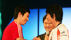 '인텔 코어2 듀오 탑재 매직스테이션 제1회 슈퍼파이트(이하 슈퍼파이트)'가 3일 오후 5시 서울 삼성동 코엑스 대서양홀에서 지상 최대의 규모로 펼쳐 졌다. 임요환이 제 2경기 홍진호에게 3대 2로 승리로 군 입대전 마지막 경기를 끝내자 주훈 감독이 상패를 전하며 격려 하고 있다./주지영 기자 jj0jj0@osen.co.kr...