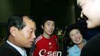 '인텔 코어2 듀오 탑재 매직스테이션 제1회 슈퍼파이트(이하 슈퍼파이트)'가 3일 오후 5시 서울 삼성동 코엑스 대서양홀에서 지상 최대의 규모로 펼쳐 졌다. 홍진호와의 제 2경기를 3대 2로 승리한 임요환이 부모님과 함께 첫 스승 김양중 해설 에게 웃으며 인사를 하고 있다. /주지영 기자 jj0jj0@osen.co.kr...