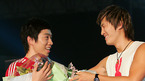 '인텔 코어2 듀오 탑재 매직스테이션 제1회 슈퍼파이트(이하 슈퍼파이트)'가 3일 오후 5시 서울 삼성동 코엑스 대서양홀에서 지상 최대의 규모로 펼쳐 졌다. 제 2경기에 앞서 임요환이 홍진호는 함께 가야할 곳이 있다며 "꼭 이겨서 데리고 가겠다"고 말하자 홍진호가 아직 나이 차이가 있기 때문에 "임요환 혼자...