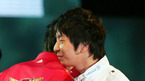 '인텔 코어2 듀오 탑재 매직스테이션 제1회 슈퍼파이트(이하 슈퍼파이트)'가 3일 오후 5시 서울 삼성동 코엑스 대서양홀에서 지상 최대의 규모로 펼쳐 졌다. 경기를 앞두고 마재윤이 임요환과 포옹을 하며 서로 격려 하고 있다./주지영 기자 jj0jj0@osen.co.kr [Copyright ⓒ 한국 최고의 스포츠 엔터테인먼트 전문 미디어...