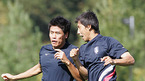 8일 가나, 11일 시리아전을 앞두고 파주 NFC에서 훈련에 돌입한 태극전사들이 6일 추석 아침 간단한 차례로 조상에 대한 예의를 갖추고 바로 강훈에 돌입했다. 차두리가 오범석과 짝을 이루어 팔짱을 끼고 도는 스트레칭을 하고 있다./파주=손용호 기자spjj@osen.co.kr [Copyright ⓒ 한국 최고의 스포츠 엔터테인먼트 전문 미디어...