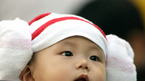 9일 광주 무등 야구장에서 열린 2006 프로야구 준플레이오프 2차전 KIA 타이거즈와 한화 이글스의 경기에 아기가 '양 모자' 두건을 한 채 그라운드 쪽을 바라보고 있다./광주=박영태 기자 ds3fan@osen.co.kr [Copyright ⓒ 한국 최고의 스포츠 엔터테인먼트 전문 미디어 OSEN(www.osen.co.kr) 무단전재...
