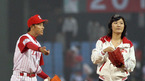 11일 대전 야구장에서 열린 2006 프로야구 준플레이오프 최종 3차전 한화 이글스와 KIA 타이거즈의 경기에 앞서 인기 개그우먼 김미려가 시구를 하기 위해 선수들이 던지는 마운드로 올라 한화 선발투수 송진우가 보는 가운데 투구하고 있다./대전=박영태 기자 ds3fan@osen.co.kr [Copyright ⓒ 한국 최고의 스포츠 엔터테인먼트 전문...