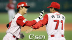 11일 대전 야구장에서 열린 2006 프로야구 준플레이오프 최종 3차전 한화 이글스와 KIA 타이거즈의 경기 한화의 3회말 2사 1,2루 5번 이범호가 KIA 선발투수 이상화에게 좌월 3점 홈런을 날리자 김호 1루코치가 하이파이브를 기다리고 있다./대전=박영태 기자 ds3fan@osen.co.kr [Copyright ⓒ 한국 최고의 스포츠...