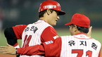 11일 대전 야구장에서 열린 2006 프로야구 준플레이오프 최종 3차전 한화 이글스와 KIA 타이거즈의 경기 3회말 2사 1,2루 5번 이범호가 KIA 선발투수 이상화에게 좌중월 홈런을 날린 후 김호 1루코치와 하이파이브 하고 있다./대전=박영태 기자 ds3fan@osen.co.kr [Copyright ⓒ 한국 최고의 스포츠 엔터테인먼트 전문 미디어...