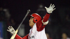 11일 대전 야구장에서 열린 2006 프로야구 준플레이오프 최종 3차전 한화 이글스와 KIA 타이거즈의 경기 한화의 3회말 2사 1,2루 5번 이범호가 KIA 선발투수 이상화에게 좌월 홈런을 날린 후 두 손을 번쩍 들어 환호하고 있다./대전=박영태 기자 ds3fan@osen.co.kr [Copyright ⓒ 한국 최고의 스포츠 엔터테인먼트 전문...