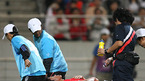 한국과 시리아의 아시안컵 예선 5차전이 11일 서울 상암월드컵경기장에서 벌어졌다. 전반 설기현이 부상으로 들것에 실려 나가는 동안 최주영 대표팀 의무팀장이 스프레이을 뿌려주고 있다./상암=김영민 기자ajyoung@osen.co.kr [Copyright ⓒ 한국 최고의 스포츠 엔터테인먼트 전문 미디어 OSEN(www.osen.co.kr) 무단전재 및...