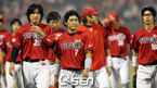 11일 대전 야구장에서 열린 2006 프로야구 준플레이오프 최종 3차전 한화 이글스와 KIA 타이거즈의 경기에서 6-4로 한화에 패한 KIA 선수단이 팬들에게 인사한후 침울하게 덕아웃으로 향하고 있다./대전=박영태 기자 ds3fan@osen.co.kr [Copyright ⓒ 한국 최고의 스포츠 엔터테인먼트 전문 미디어...