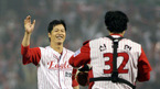 11일 대전 야구장에서 열린 2006 프로야구 준플레이오프 최종 3차전 한화 이글스와 KIA 타이거즈의 경기에서 6-4로 승리한 후 한화 구대성이 포수 신경현과 하이파이브 하고 있다./대전=박영태 기자 ds3fan@osen.co.kr [Copyright ⓒ 한국 최고의 스포츠 엔터테인먼트 전문 미디어 OSEN(www.osen.co.kr) 무단전재 및...