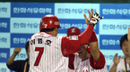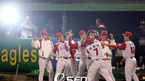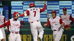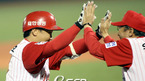 11일 대전 야구장에서 열린 2006 프로야구 준플레이오프 최종 3차전 한화 이글스와 KIA 타이거즈의 경기 3회말 2사 1,2루 5번 이범호가 좌중월 홈런을 날린 후 류현진 등과 하이파이브 하고 있다./대전=박영태 기자 ds3fan@osen.co.kr [Copyright ⓒ 한국 최고의 스포츠 엔터테인먼트 전문 미디어...