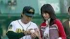 13일 수원 야구장 2006 프로야구 플레이오프 1차전 현대 유니콘스와 한화 이글스 경기가 열리기전 시구자 인기 탤런트 윤정희가 김재박 감독으로 부터 공을 잡는 방법을 배우고 있다./수원=김영민 기자ajyoung@osen.co.kr [Copyright ⓒ 한국 최고의 스포츠 엔터테인먼트 전문 미디어 OSEN(www.osen.co.kr) 무단전재...
