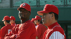 13일 수원 야구장에서 열린 2006 프로야구 플레이오프 1차전 현대 유니콘스와 한화 이글스의 경기에 앞서 한화 데이비스가 김인식 감독과 나란히 서서 동료들의 타격 연습을 지켜보고 있다./수원=김영민 기자ajyoung@osen.co.kr [Copyright ⓒ 한국 최고의 스포츠 엔터테인먼트 전문 미디어 OSEN(www.osen.co.kr)...
