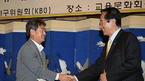 한국야구위원회는 13일 서울 양재동 교육문화센터에서 세계청소년선수권대회 우승 축하 오찬을 마련했다. 신상우 한국야구위원회 총재가 허세환 감독에게 격려금을 전달하고 있다./김영민 기자ajyoung@osen.co.kr [Copyright ⓒ 한국 최고의 스포츠 엔터테인먼트 전문 미디어 OSEN(www.osen.co.kr) 무단전재 및 재배포 금지]