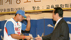 한국야구위원회는 13일 서울 양재동 교육문화센터에서 세계청소년선수권대회 우승 축하 오찬을 마련했다. 신상우 한국야구위원회 총재가 주장 김강에게 격려금을 전달하고 있다./김영민 기자ajyoung@osen.co.kr [Copyright ⓒ 한국 최고의 스포츠 엔터테인먼트 전문 미디어 OSEN(www.osen.co.kr) 무단전재 및 재배포 금지]