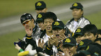 13일 수원 야구장서 벌어진 2006 프로야구 플레이오프 1차전 현대 유니콘스와 한화 이글스의 경기서 11-4로 대승을 거둔 현대의 마무리 박준수가 경기 종료 후 포수 강귀태와 악수를 나누고 있다./수원=김영민 기자ajyoung@osen.co.kr [Copyright ⓒ 한국 최고의 스포츠 엔터테인먼트 전문 미디어...