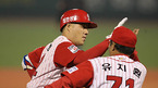 16일 대전 야구장에서 벌어진 2006 프로야구 플레이오프 3차전 한화 이글스와 현대 유니콘스의 경기 6회말 1사 후 이도형이 좌월 솔로 홈런을 날리고 유지훤 3루코치로부터 환영을 받고 있다./대전=김영민 기자ajyoung@osen.co.kr [Copyright ⓒ 한국 최고의 스포츠 엔터테인먼트 전문 미디어 OSEN(www.osen.co.kr)...