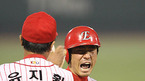 16일 2006 프로야구 플레이오프 한화 이글스와 현대 유니콘스의 3차전 경기가 대전야구장에서 벌어졌다. 6회초 2사 1,2루서 채종국이 4-4 동점 적시타를 치고 1루에서 환호하고 있다./대전=손용호 기자spjj@osen.co.kr [Copyright ⓒ 한국 최고의 스포츠 엔터테인먼트 전문 미디어 OSEN(www.osen.co.kr) 무단전재...