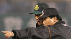 16일 2006 프로야구 플레이오프 한화 이글스와 현대 유니콘스의 3차전 경기가 대전야구장에서 벌어졌다. 6회말 1사 후 한상훈의 3루타 때 현대 1루수 이숭용이 파울이 아니냐고 묻자 허운 1루심이 페어볼임을 설명하고 있다. /대전=손용호 기자spjj@osen.co.kr [Copyright ⓒ 한국 최고의 스포츠 엔터테인먼트 전문 미디어...
