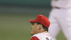 16일 대전 야구장에서 벌어진 2006 프로야구 플레이오프 3차전 한화 이글스와 현대 유니콘스의 경기서 한화 구원투수 문동환이 8회초 1사 후 오른쪽 허벅지를 맞은 타구를 잡아 정성훈을 1루서 아웃시킨 뒤 고통스러워하고 있다./대전=김영민 기자ajyoung@osen.co.kr [Copyright ⓒ 한국 최고의 스포츠 엔터테인먼트 전문 미디어...